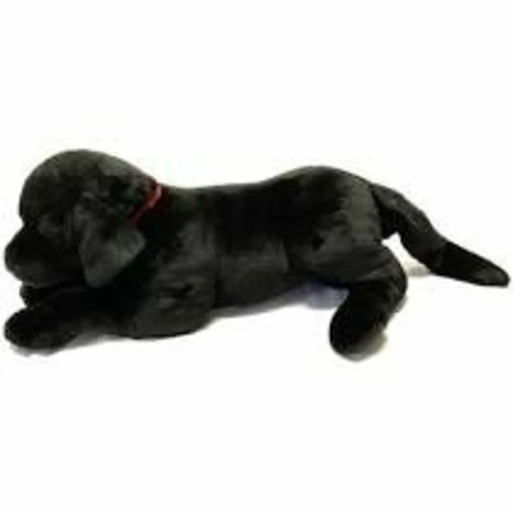 - This big plush black lab in a lying pose showcases breed-specific coloring and a delightfully realistic appearance โ luxurious black plush fur, amber-colored eyes, soft leatherette nose and big floppy ears.