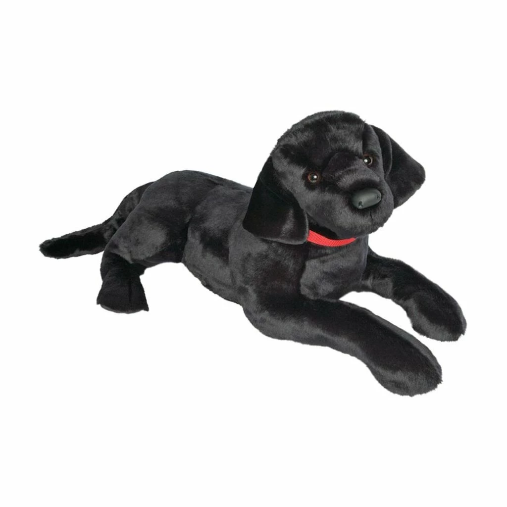 Dickens the jumbo-sized Black Lab stuffed animal is 32 inches of cuddly, lifelike fun! Douglas specializes in the creation of highly realistic plush dogs, and weโre sure Dickens will make you look twice! A magnificent addition to any playroom or bedroom, Dickens comes with a red nylon collar and is the size of a real Labrador Retriever. However, this dog doesnโt shed or bark, making him an ideal pet! Crafted with high quality black plush fur and soft, springy fill, this stuffed animal is exceptionally huggable and is a cuddly friend that can serve as a luxurious pillow as well. He features large amber colored eyes and a soft leatherette nose for extra realism. Generously sized floppy ears hang down on either side of his face giving him a look that will warm your heart. Bring this lovable plush giant home today or get Dickens as a memorable gift for that special Labrador lover in your life!