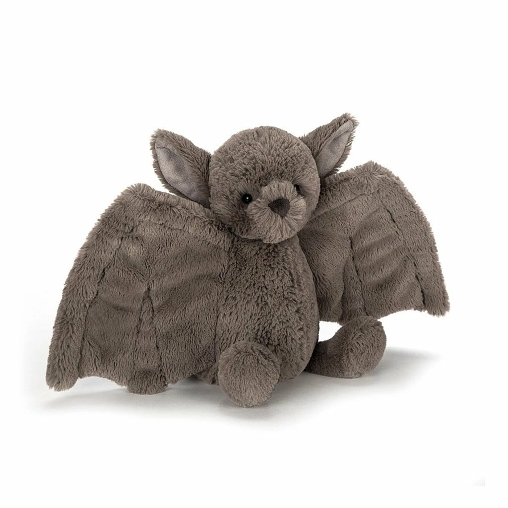 - Jellycat® Bashful Bat has beans in his bottom so that he can sit and pose. Spooky bats go flying at night, flapping about in the pale moonlight… Boo!