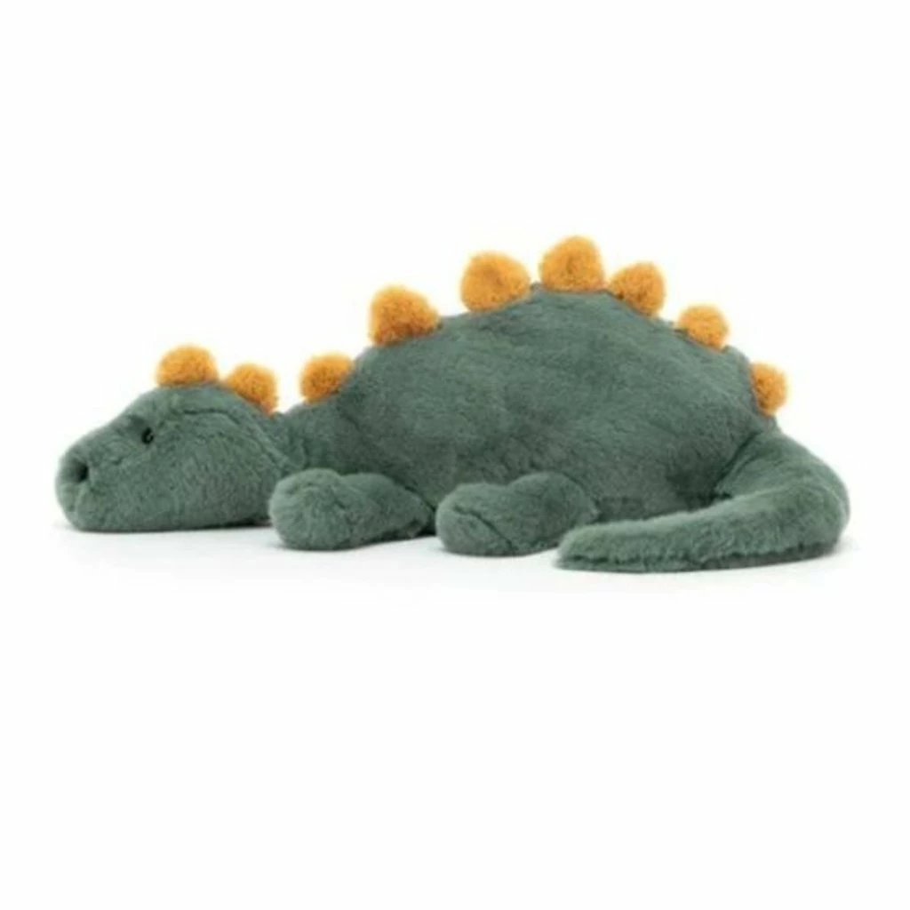 Lolling about and having a think โ that’s what Douglas Dino likes to do! This mossy dino has soft mustard spines, a long curvy tail and deep mossy fur. He’ll flump and flop on the bed or the rug for a lovely dino-snore!