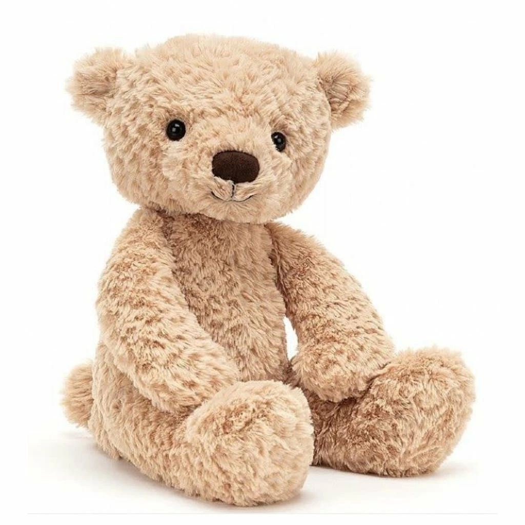 Finley Bear is one tussly grizzly, with rumpled, ruffled milk-chocolate fur! Big squashy paws and a cocoa nose help this cub trundle right through the woods! Hibernate with this tousled teddy for happy dreams of forest streams.