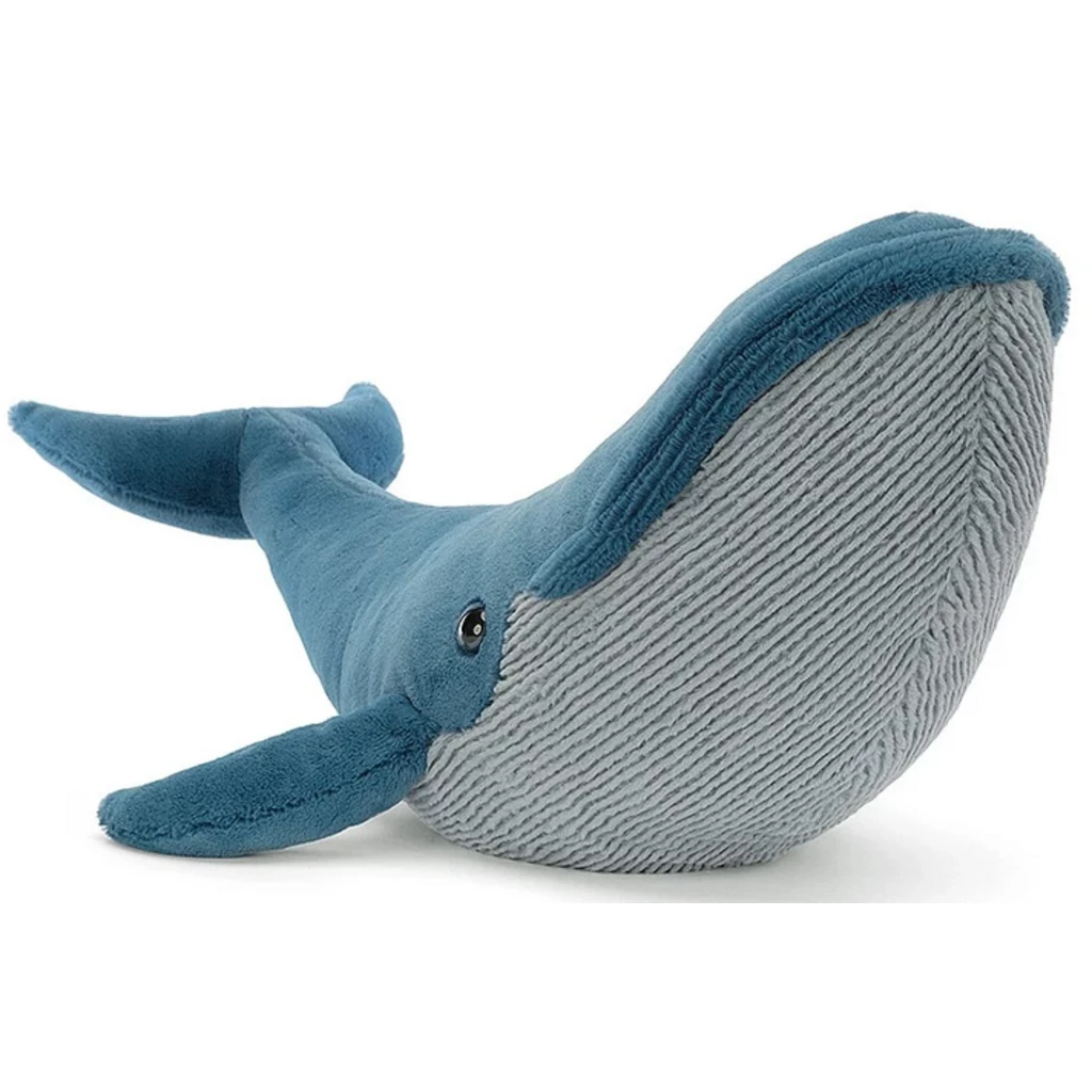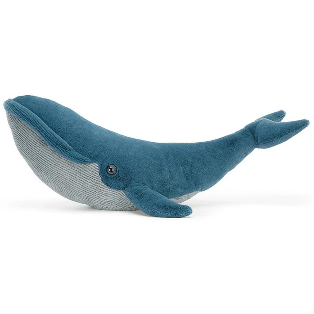 - Gilbert the Great Blue Whale from Jellycatยฎ is a curved, sea-blue whale that measures 7 inches high x 22 inches long with curve, 32 inches long without curve.