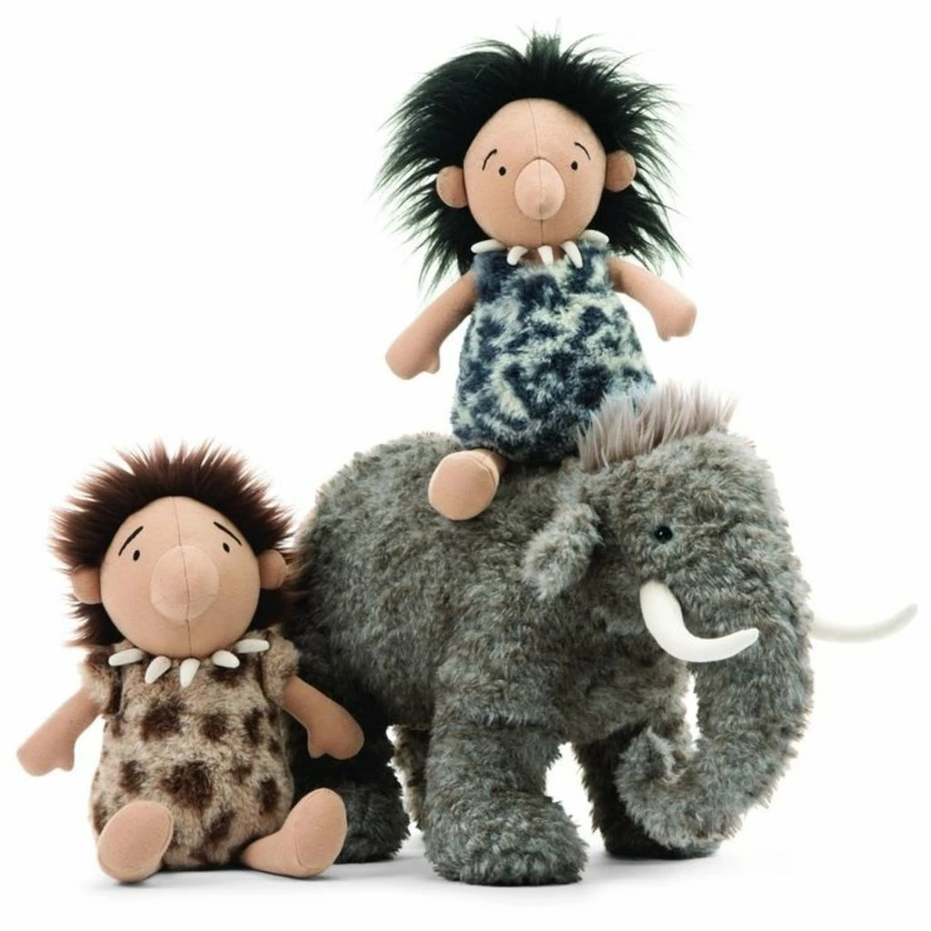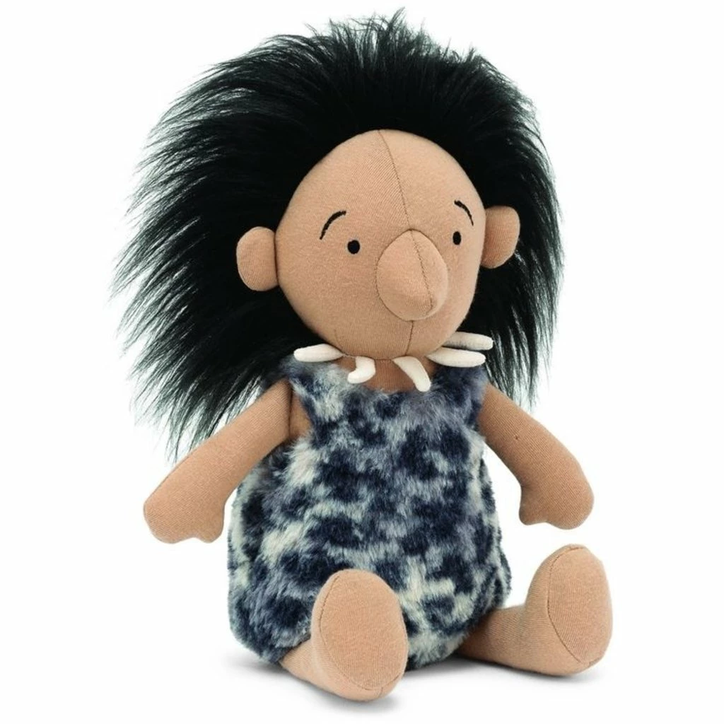 Adventure through time with Elma or Nev! Prehistoric Elma is a bold, brave cavegirl, with a cozy fur outfit in blue leopard fluff. This chunky-nosed chum has wild blue-black hair, holdable hands and a soft tooth necklace. She’s the finest hunter in the tribe!