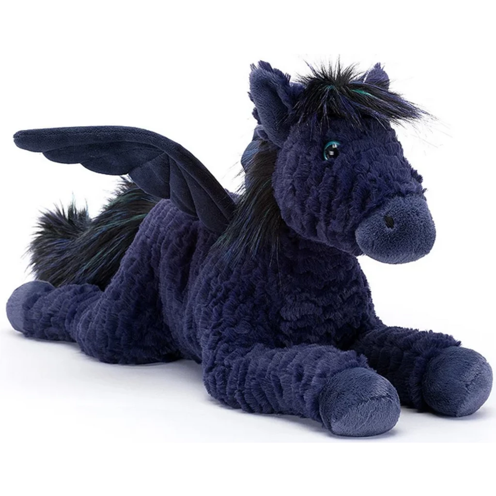 - Seraphina Pegasus is a midnight-blue winged horse from Jellycat® and measures 9 inches high x 20 inches long.