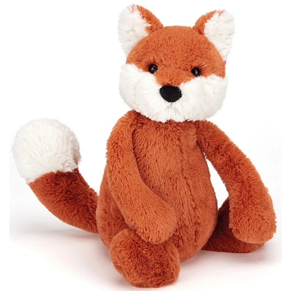 - This Bashful Fox cub from Jellycat® is a snuggly cinnamon-colored companion with his ears, face and tail tipped in white, measuring 4 inches wide x 7 inches high.