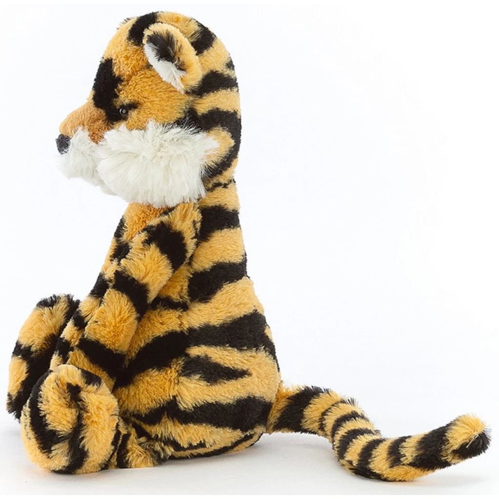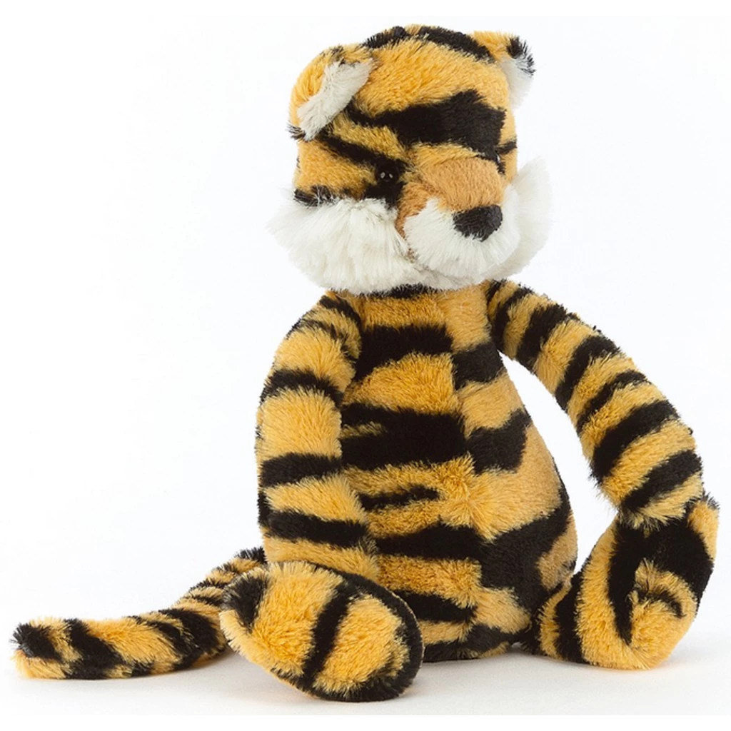- This sweet Small Bashful Tiger from Jellycat® is soft, stripey and ready to snuggle! He measures 4 inches wide x 7 inches tall.
