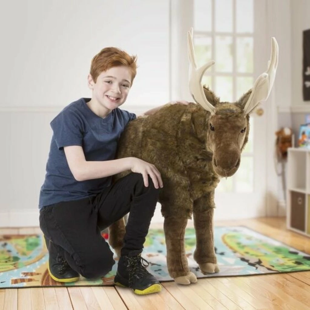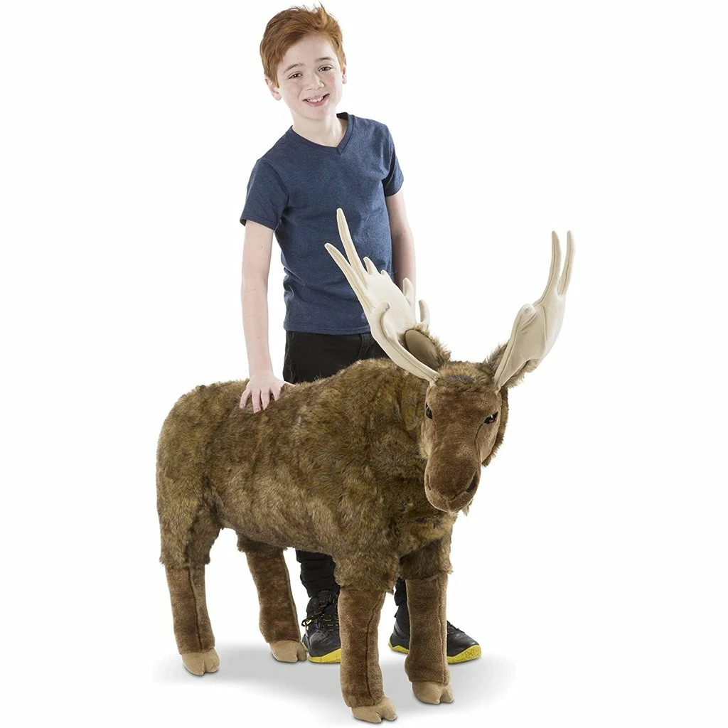 This noble and mighty moose is a striking addition to any playroom or bedroom! Standing nearly three-and-a-half feet tall, with soft, palmate antlers that measure 18 inches across, this impressive figure is soft to the touch, while the quality construction and a strong interior structure means it will hold up to years of hugs and snuggling. Realistic details include a distinctive “bell” under its chin and soft hooves.